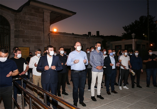 Fatih Camii’nde, Fatih Sultan Mehmet Hazretlerinin türbesinin önünde buluştuklarını aktaran Ahmet Büyükgümüş, “Bizde burada şükür dualarımızda bulunduk. Hakikaten 100 yıla yakın bir süredir milletimizin içinde buruk bir acı, kalbini sıkıştıran bir durumdu Ayasofya’nın müze olarak vatandaşlarımızla buluşması. Dün alınan kararla hem Danıştay ilgili dairesinin hem de buna istinaden Sayın Cumhurbaşkanımızın yayınlamış olduğu kararname ile Ayasofya yeniden asıl statüsüne, cami statüsüne geri dönmüş oldu. İnşallah 24 Temmuz’da Ayasofya ibadete açılacak ve biz tarihimizin önemli anlarından birini daha geride bırakacağız. Sayın Cumhurbaşkanımız dün büyük, muhteşem bir konuşma gerçekleştirdi. Tafsilatıyla meseleye tüm açılardan beyanlarda bulundu. Bizim açımızdan Ayasofya’nın ne denli bir egemenlik meselesi olduğu, fethin İstanbul’daki en önemli sembolü olduğunu vurguladı. Ve bundan sonra da tüm insanlık için Ayasofya’nın abidevi bir mimari eser olarak ama aynı zamanda cami fonksiyonuyla hizmet edeceğini vurguladı. Zira süreç boyunca ‘işte olmazdı, öyleydi, böyleydi’ kamuoyu çok açıklama gördü. Ama hem dünyada olup bitenler açısından, hem Türkiye’de olup bitenler açısından dün meseleye son nokta koyulmuş oldu.” diye konuştu.