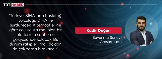 Şimdi Türkiye, SİHA’larla başlattığı yolculuğu DİHA ile sürdürecek. Alternatiflerine göre çok ucuza mal olan bir platformla saatlerce gökyüzünde kalacak. Doğan da bu duruma işaret ediyor ve şöyle devam ediyor: