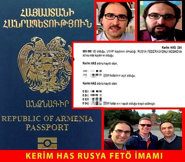Türk makamlarından elde edilen bilgiye göre FETÖ’nün Rusya İmamı olduğu ifade edilen Kerim Has’ın Ermenice öğrendiği ve Ermenistan vatandaşı olduğu ortaya çıktı. Kerim Has’ın adı Ankara Cumhuriyet Başsavcılığı’nca FETÖ’nün Rusya yapılanmasına yönelik yürütülen soruşturma da geçmişti.
