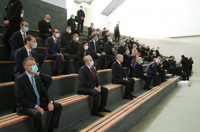 Cumhurbaşkanı Recep Tayyip Erdoğan’a, Cumhurbaşkanı Yardımcısı Fuat Oktay, Meclis Başkanı Mustafa Şentop, MHP Genel Başkanı Devlet Bahçeli’de eşlik etti.