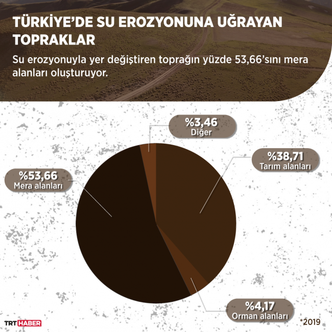 Arazi tipi açısından bakıldığında Türkiye’de yer değiştiren toprağın yüzde 38,71’inin tarım alanları, yüzde 4,17’sinin orman alanları ve yüzde 53,66’sının mera alanları olduğu görülüyor.
