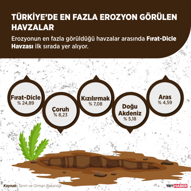 Tespitlere göre Türkiye’de her yıl su erozyonu sonucu harekete geçen toprak miktarı 642 milyon tonu buluyor. Yani ortalama olarak her hektarda 8,24 ton toprak her yıl su erozyonu sonucu yer değiştiriyor.